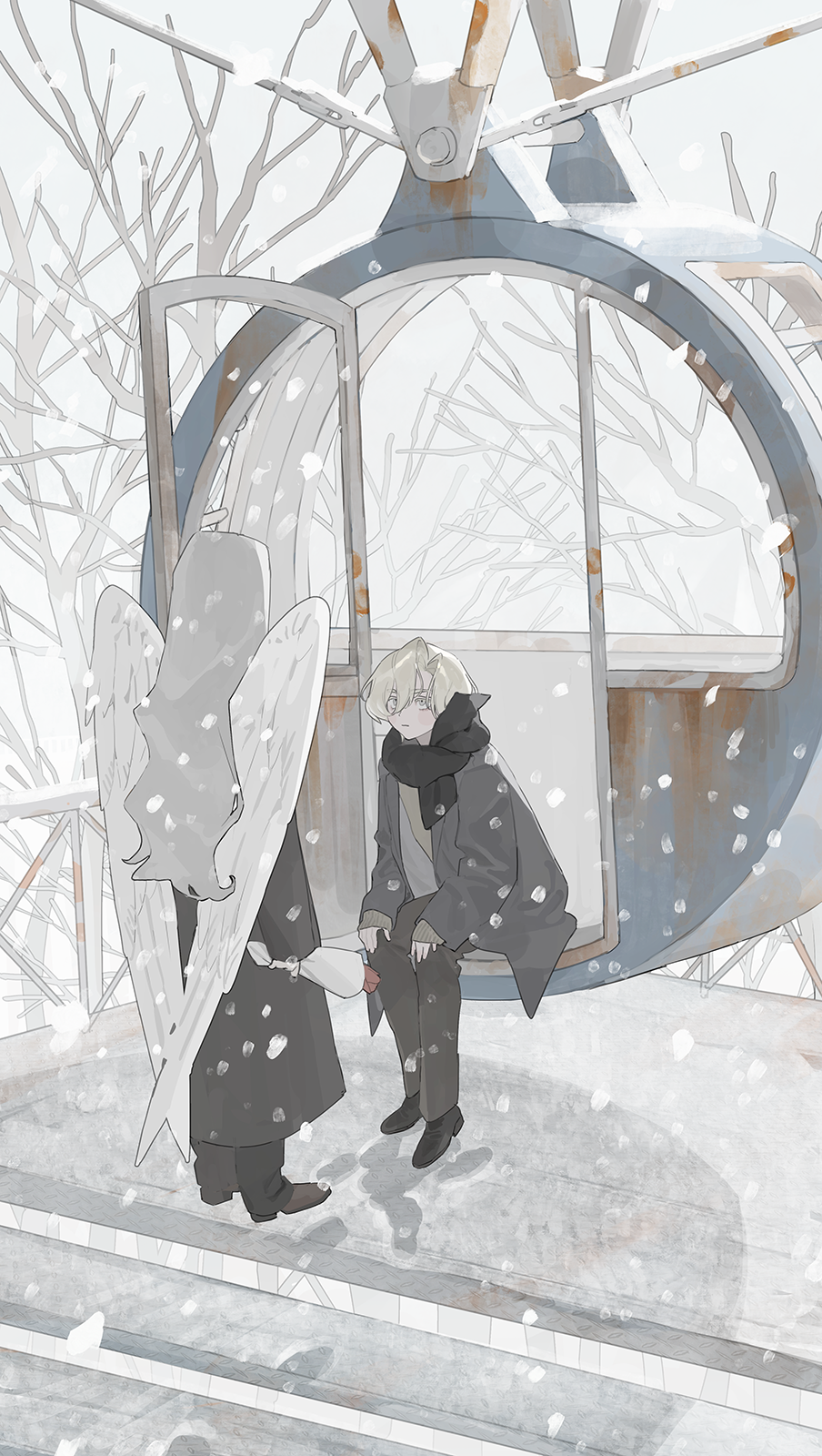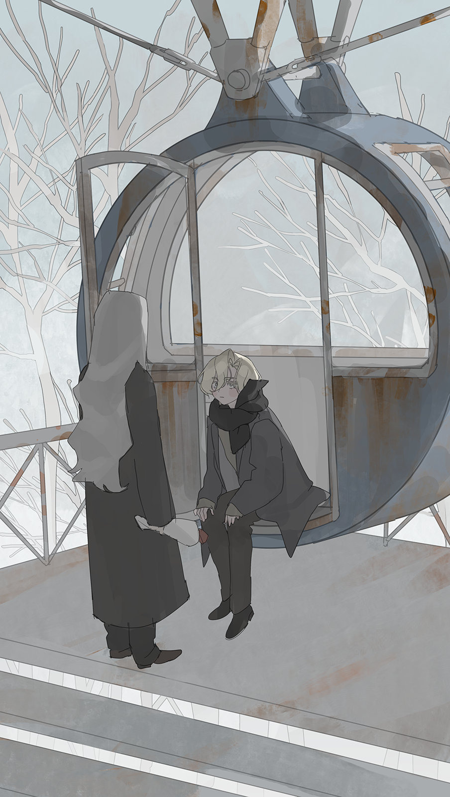 I've cherished these original characters for a long time, and I've always loved that white, quiet, lonely atmosphere of winter. I really like how I successfully captured that mood in this art.