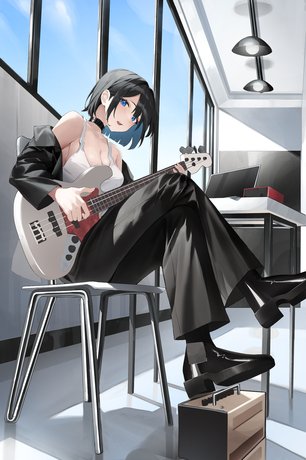 私はベースという楽器そのものがとても好きなんです。ベースの神秘的でシックなイメージに心を惹かれます。作品はそのベースを中心に据えて、キャラクターを選定し、ミニマルな作業部屋の雰囲気など、さまざまな魅力を作品全体で表現できたと思っています。だからこそ、自然と愛着のある一枚になりましたね。