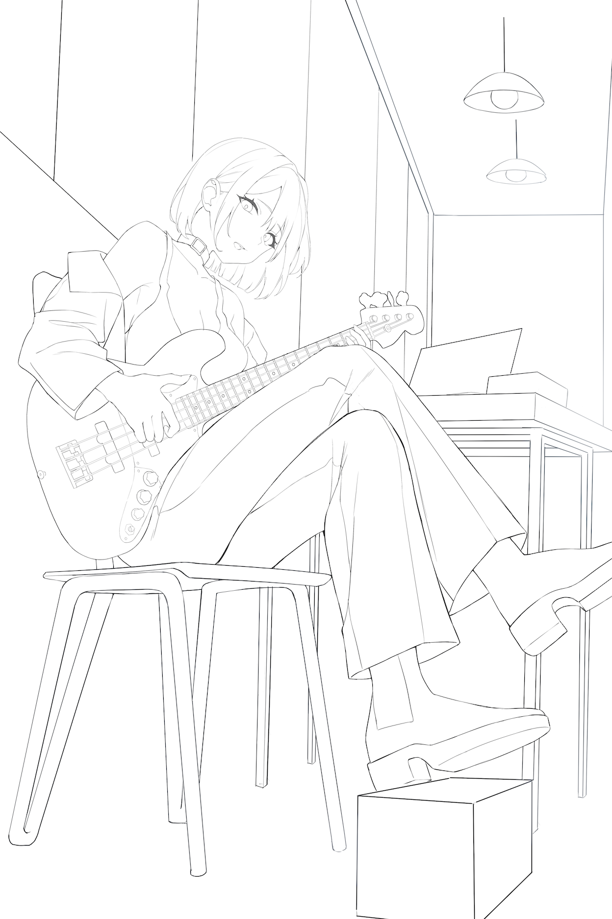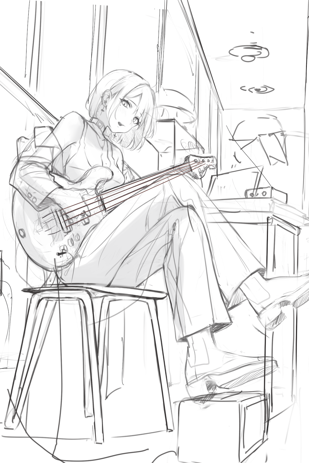 趣味としてのベース演奏と『ぼっち・ざ・ろっく!』の作品世界に触れるうちに、自然と「もし私のこの楽器をキャラクターが弾くとしたら、どんな雰囲気や魅力を持ったキャラクターになるだろう?」と考えるようになり、そのイメージをもとにデザインし作品として描いていきました!
