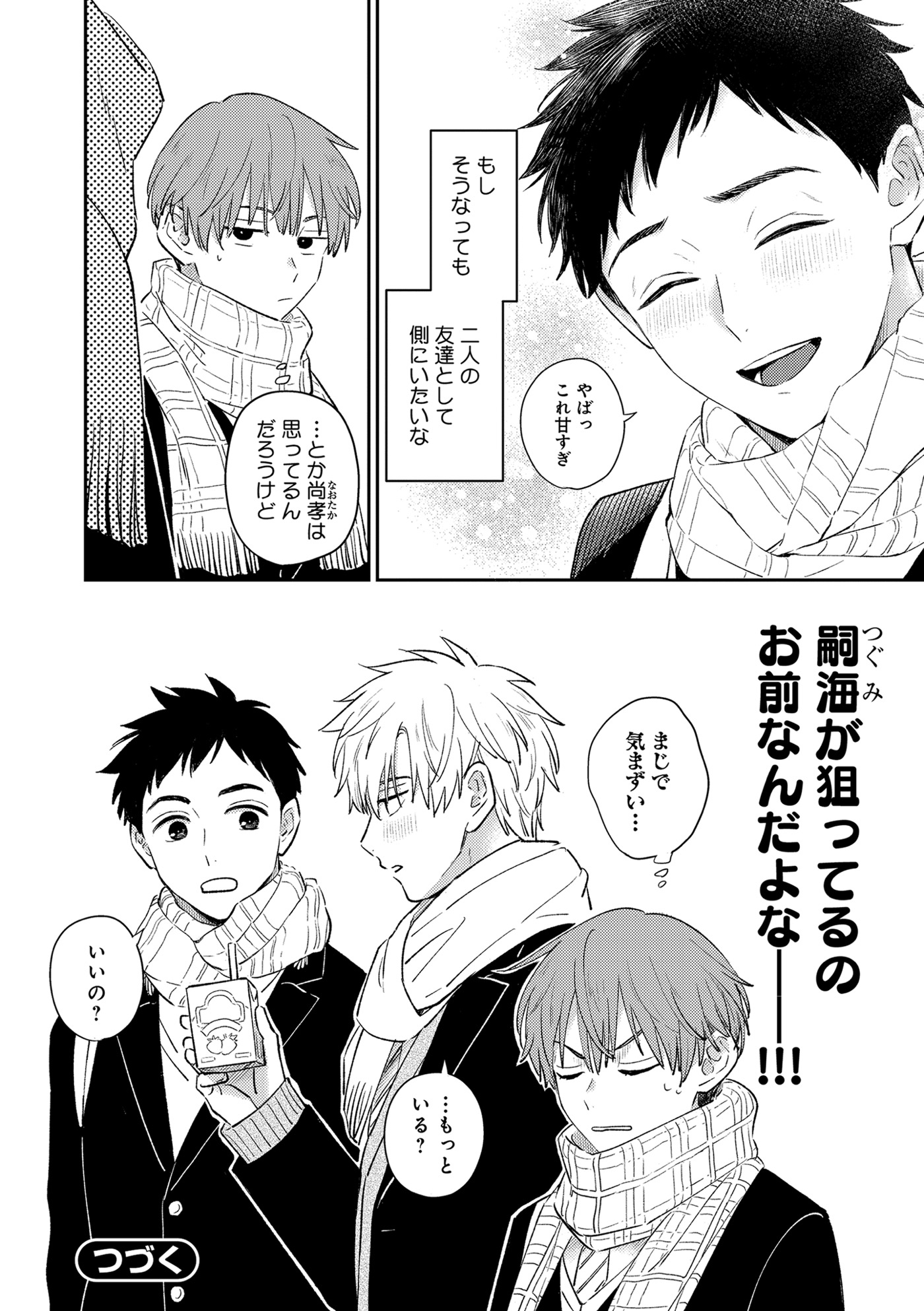 高校生の尚孝は、寡黙イケメンの嗣海に片想い中。「きっと嗣海は明希が好きだから……」と切ない気持ちを隠しているのだ。だが幼馴染の明希だけは、真実を知っていた。嗣海が激重な愛情を尚孝に向けていることを!!