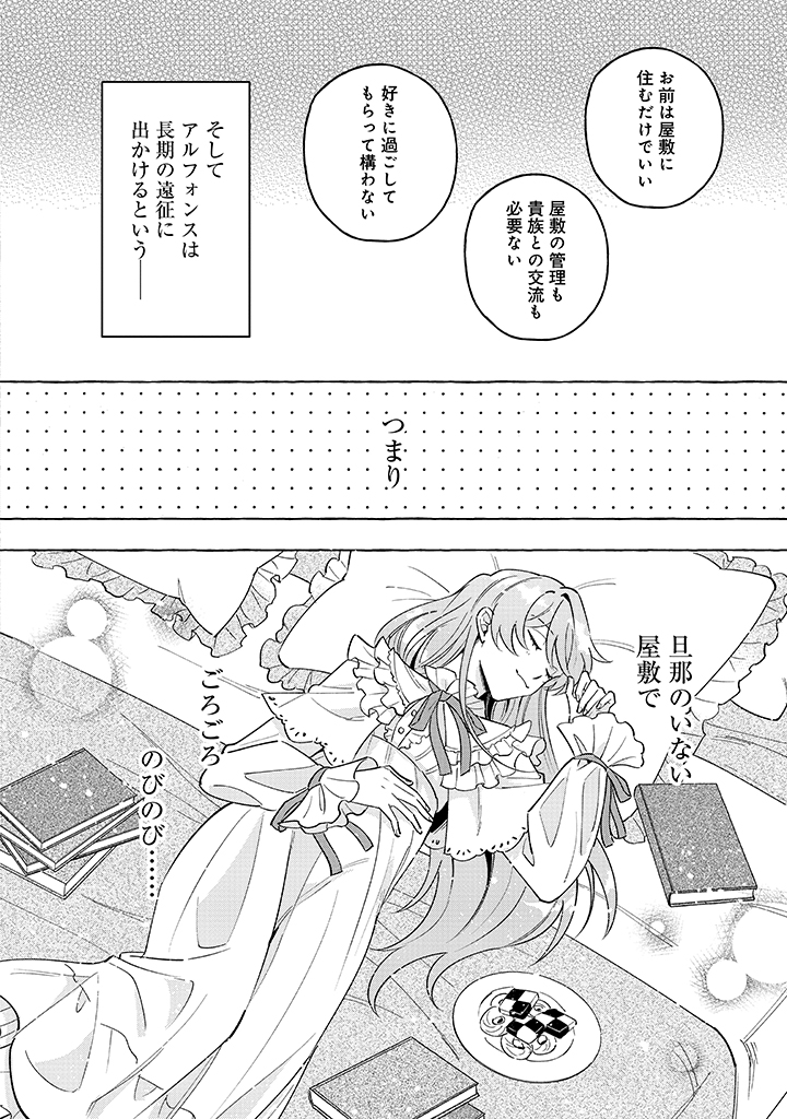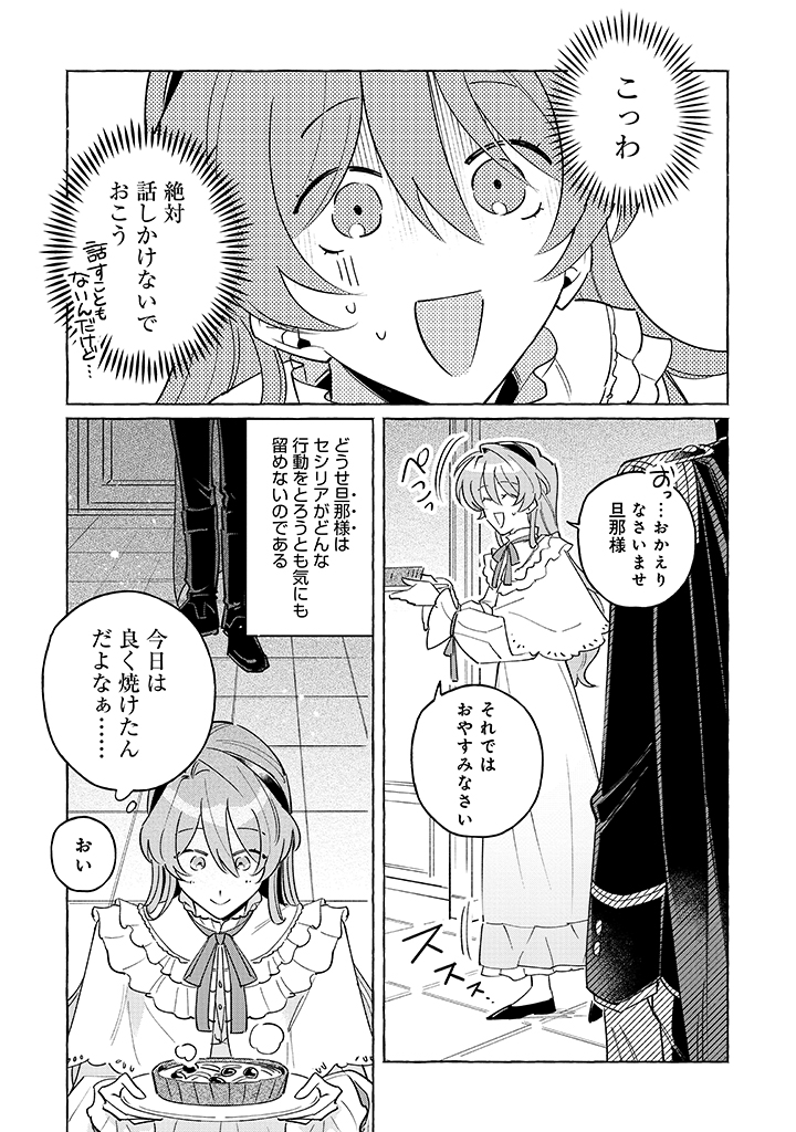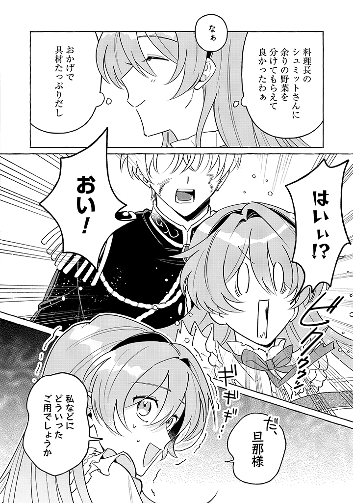 日課である、至福のひとり夜食タイムを謳歌していたセシリア。今日のお料理の出来栄えもバッチリ! とウキウキで運んでいたら、予定より早く帰ってきた旦那様、アルフォンスと鉢合わせてしまい……。「白い結婚」契約期間残り一ヵ月のふたりの関係が、ある一夜をきっかけに動き出す!?