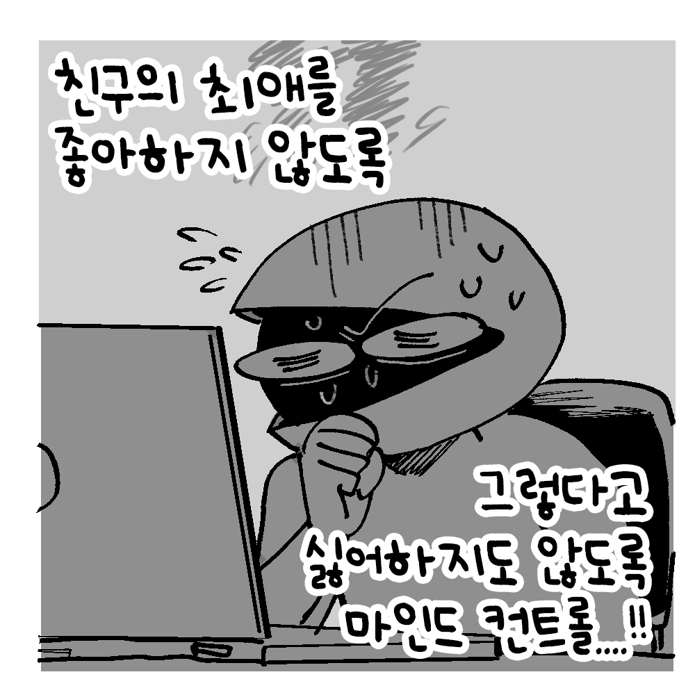 친구와 같은 아티스트, 같은 아이돌, 같은 작품, 같은 캐릭터에 빠지게 되면 은연중에 한발 물러나게 되는 것은 애정의 강도를 비교하게 되는 탓일지도 모른다.