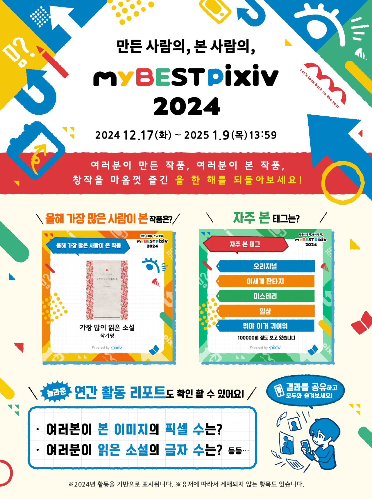 pixiv에서 작품을 투고 또는 열람한 유저가 2024년 한 해의 활동을 되돌아볼 수 있는 ‘myBESTpixiv’를 올해도 개최합니다!
