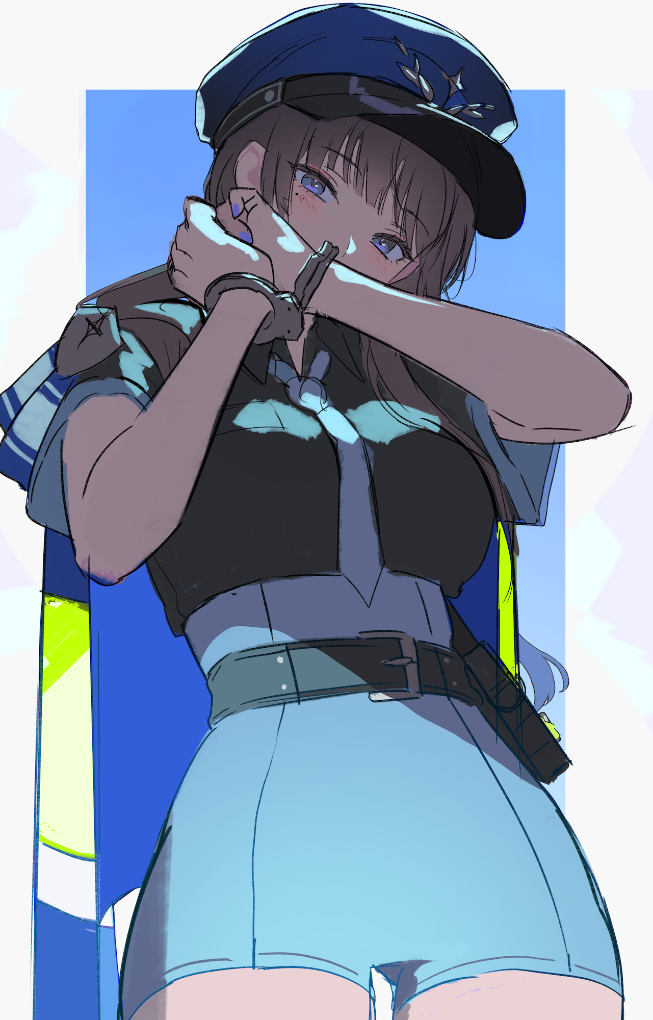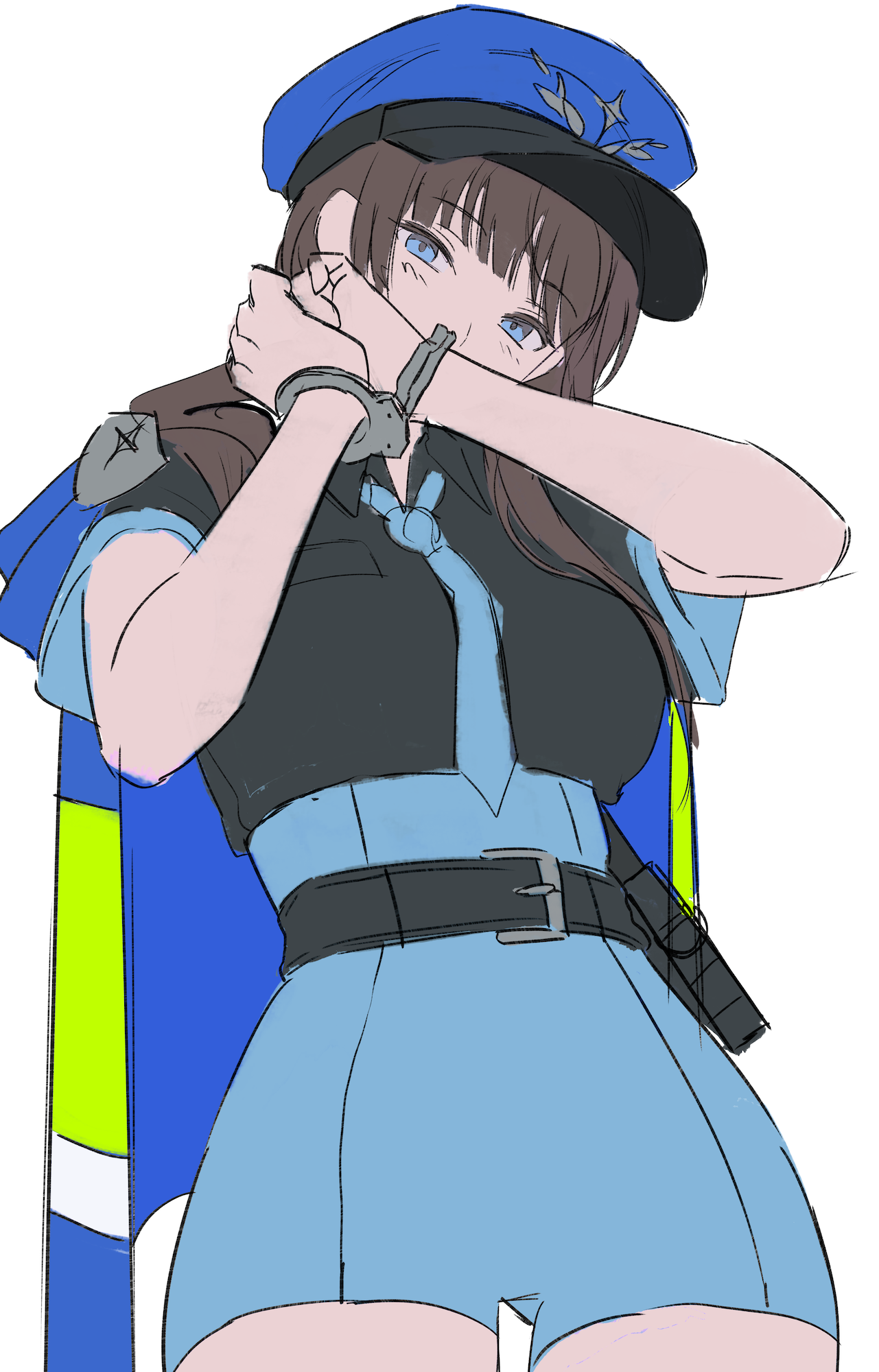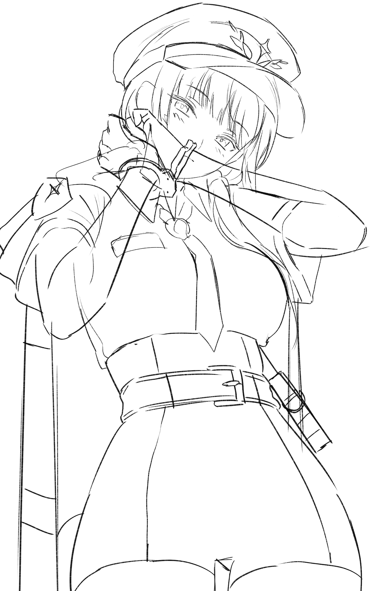 이 작품은 팔을 들어 올려 얼굴의 일부가 가려지는 구도를 베이스로 하고 있어요. 사실 아주 예전에도 비슷한 구도에 도전한 적이 있었는데, 당시에는 그 매력을 충분히 이끌어내지 못했던 기억이 있어요. 단순히 구도의 문제가 아니라, 부분적으로 보이는 얼굴을 인상적으로 그려내지 못했던 점이 내내 아쉬움으로 남았거든요. 이번에는 그 아쉬움을 달래고자 당시의 경험을 살려 전체적인 분위기를 재구성하였고, 그 덕분에 캐릭터를 더욱 매력적으로 그려낼 수 있었다고 생각해요.