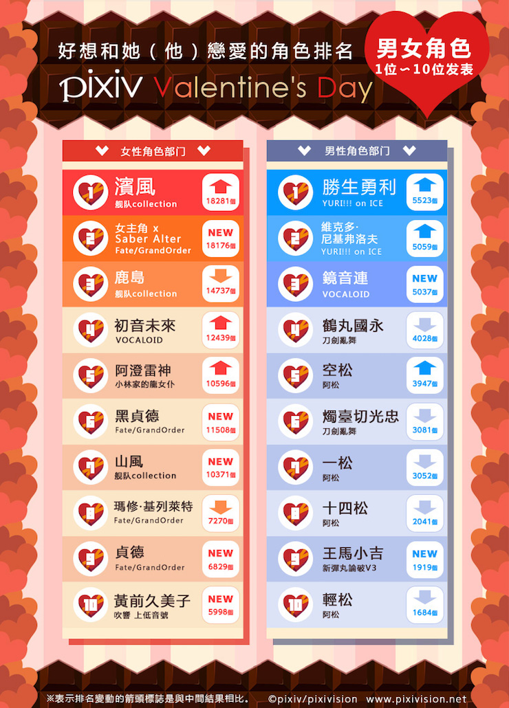 現在最受歡迎的角色是誰!? pixiv情人節2017結果公佈