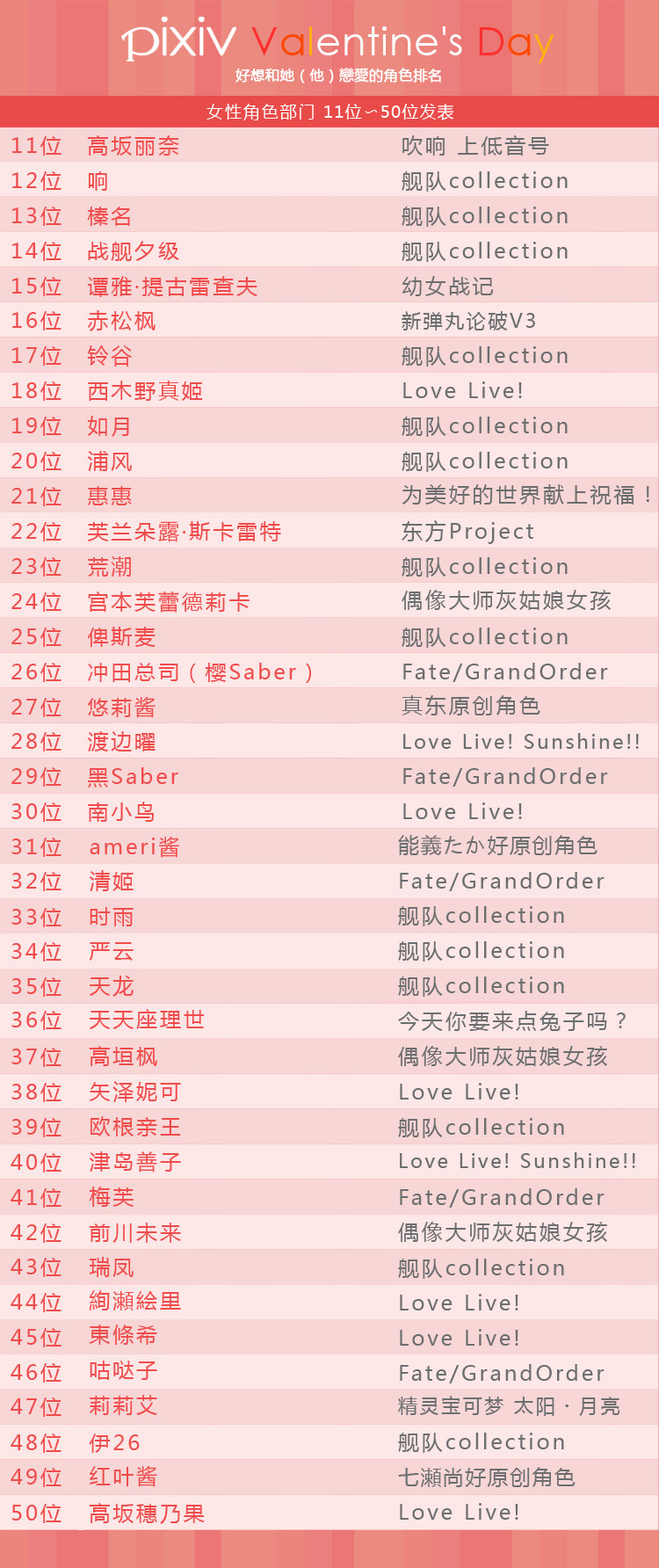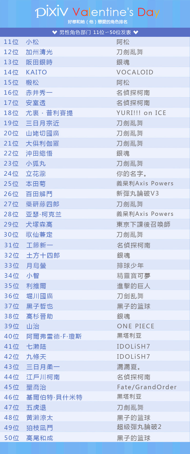 很遺憾未能進入TOP10的“pixiv情人節2017”熱門角色