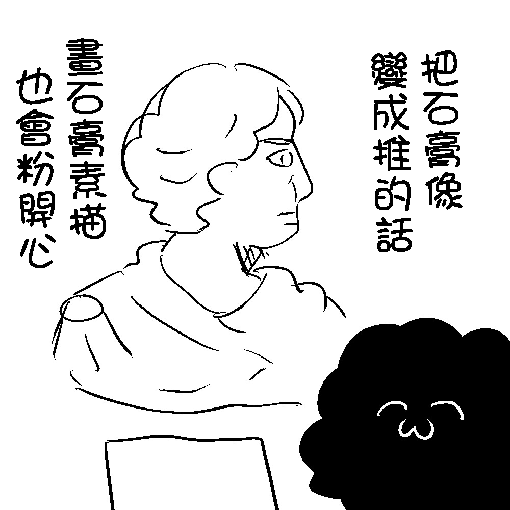 把繪畫作為一種愛好時,「享受」是最重要的。所以練習時可以選擇畫自己的推,或者乾脆想辦法把石膏像變成推,如此才能持久地畫下去。這樣搞不好會比從基礎學起來得更好,畫得更讚、進步得更快。