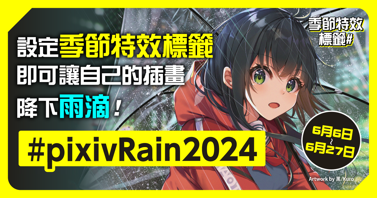 只要為你投稿的插畫標上「#pixivRain2024」,作品頁面就會下雨喔。