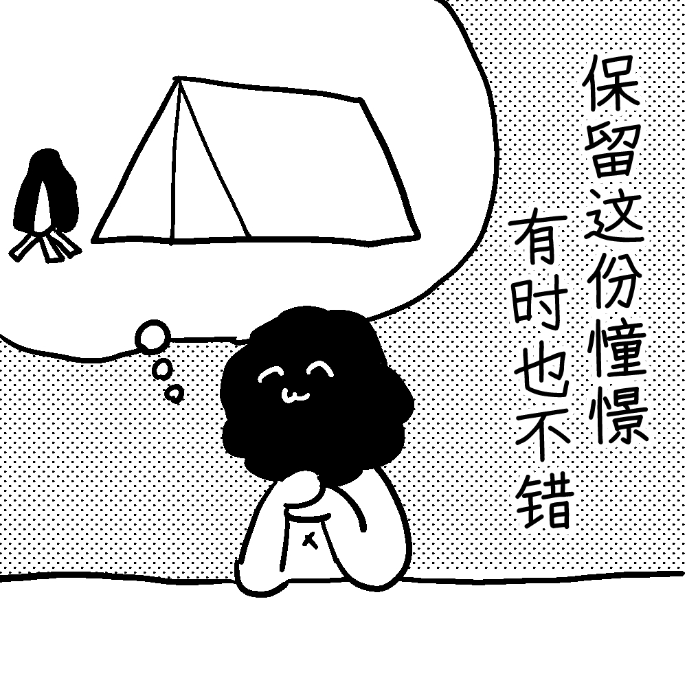 如果真去露营了,反而得直面「虫子好恶心」「我没有JK朋友,最重要的是我自己也不是JK了」等残酷现实。恐怕到时候别说露营了,就连《摇曳露营△》这部作品本身,都会因过于幻灭而没法好好看了。