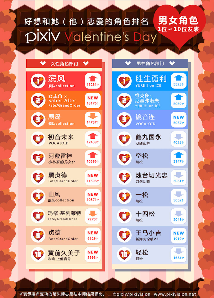 pixiv情人节 女性・男性角色部门 TOP10