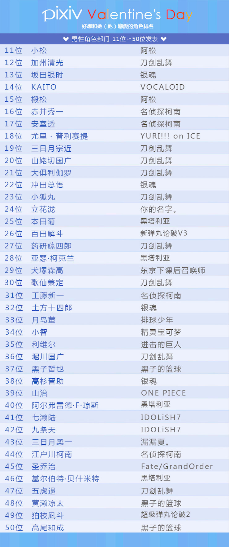 pixiv情人节2017 男性角色部门 TOP10