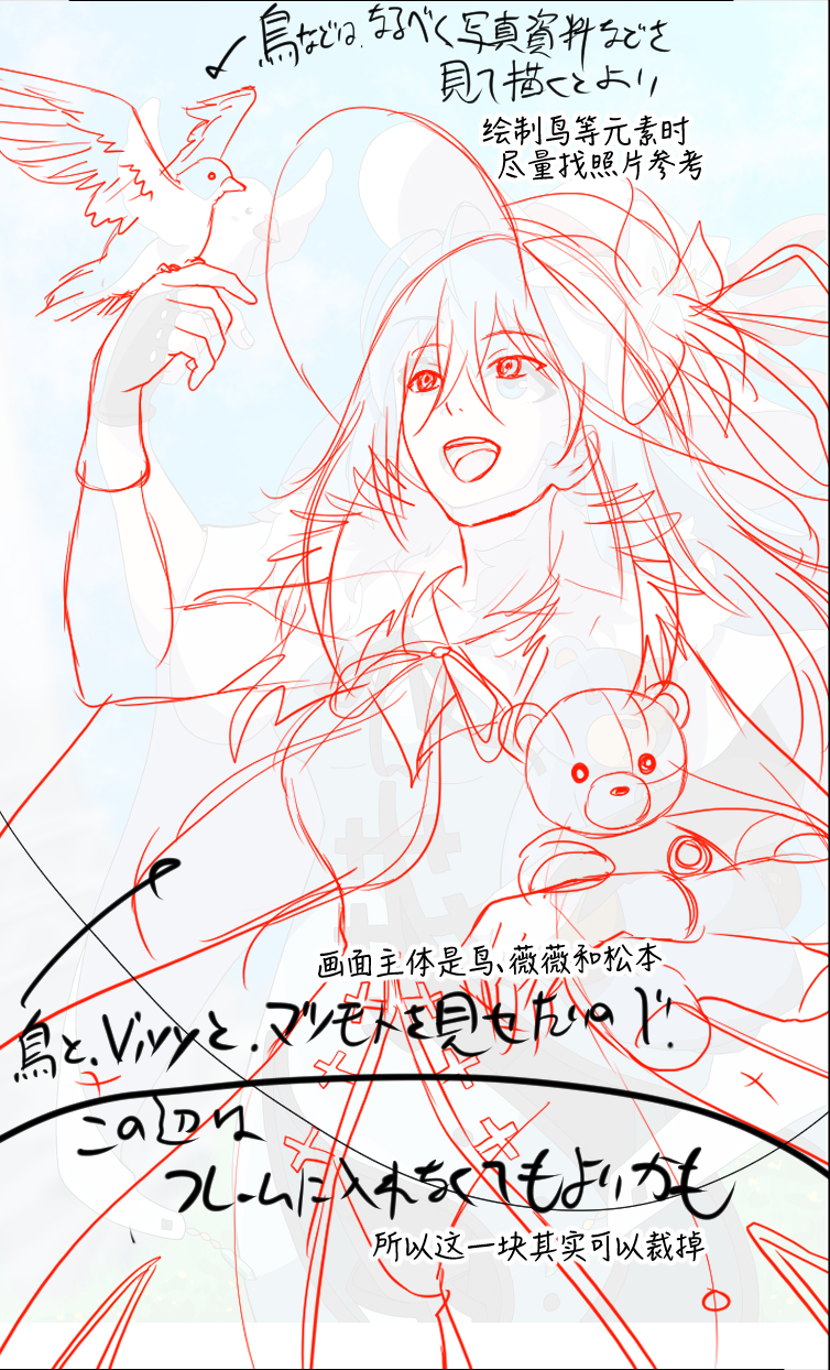 ── 首先让我们来看这幅作品的原图,以及浅野老师的修改。插画绘制的是『薇薇-萤石眼之歌-』的女主角——薇薇。而老师给出的建议则是「可以更突出强调薇薇」。能先请老师点评一下野生のゴリラK的作品吗?