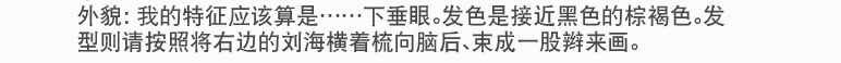 尽管附上了照片,但由于是长发,不同照片看起来发型可能会不尽相同,描述清楚也是为了避免创作者陷入迷茫。