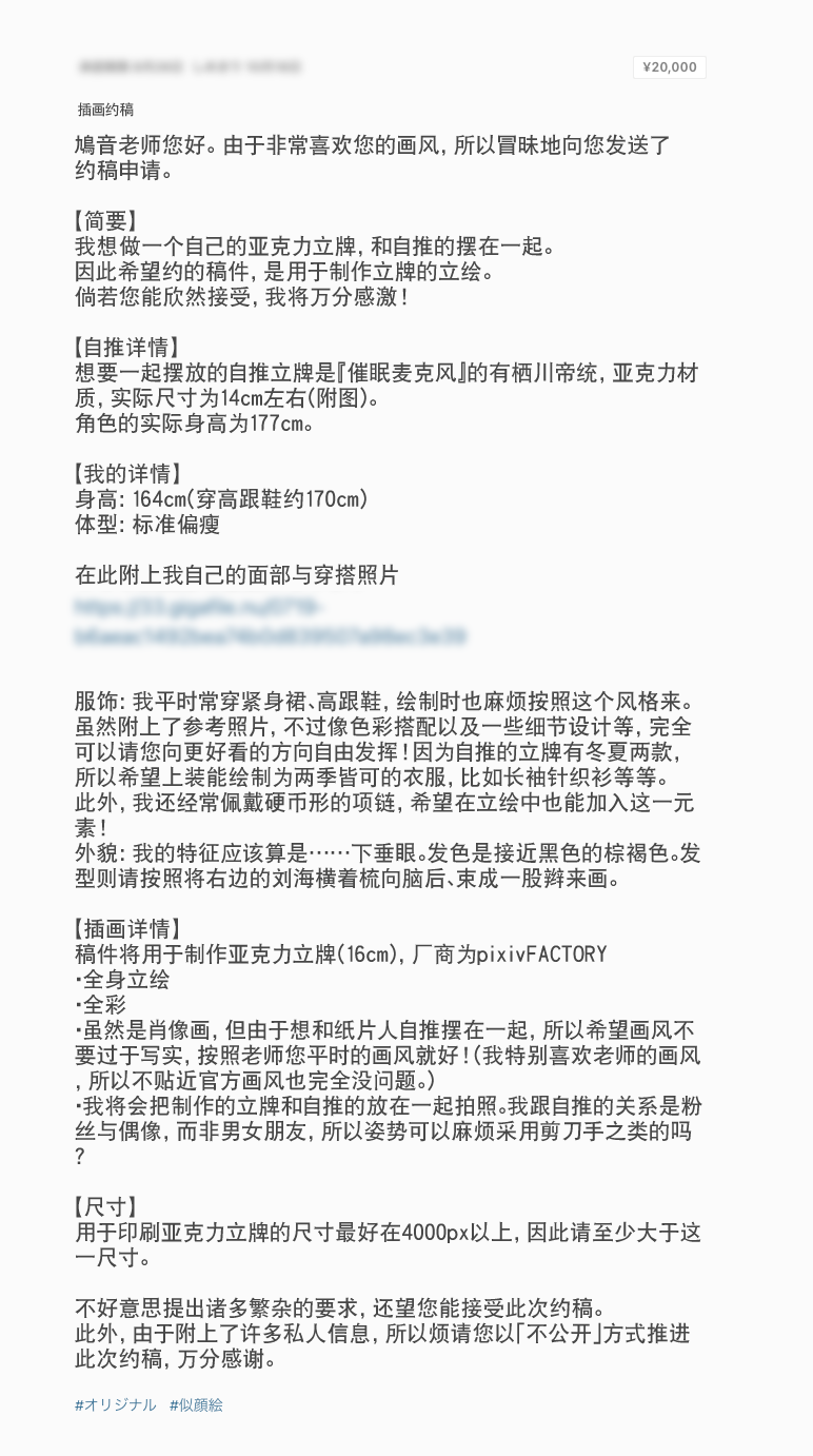 说实话,发送面部照片很难不令人有所顾虑。因此在发送此类约稿时,最好仅限于能够信得过的创作者。