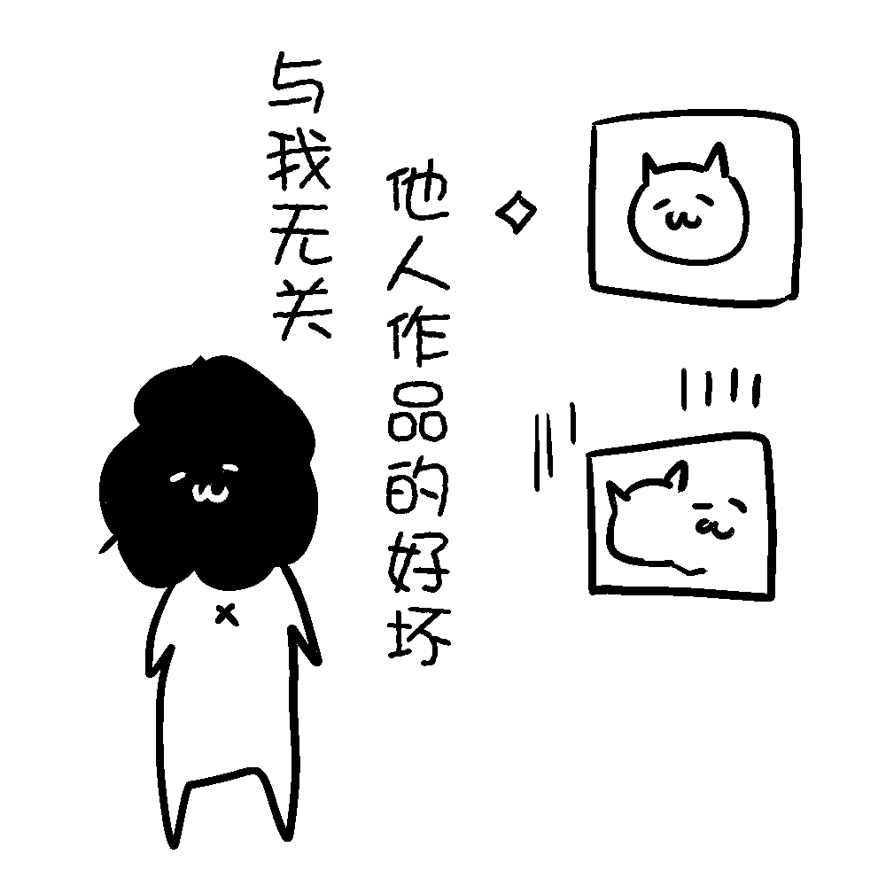 所以我的建议是,今后看到他人作品时,感到「好厉害」「好烂」或是「明明画得挺烂的为什么这么好冲……?」都无妨,但切莫拿来和自己横向比较一个孰高孰低。