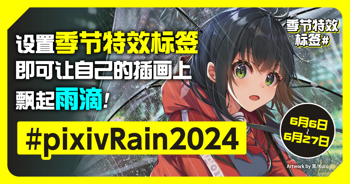 只要为自己投稿的插画标上季节特效标签「#pixivRain2024」,作品页面就会飘起雨滴特效。